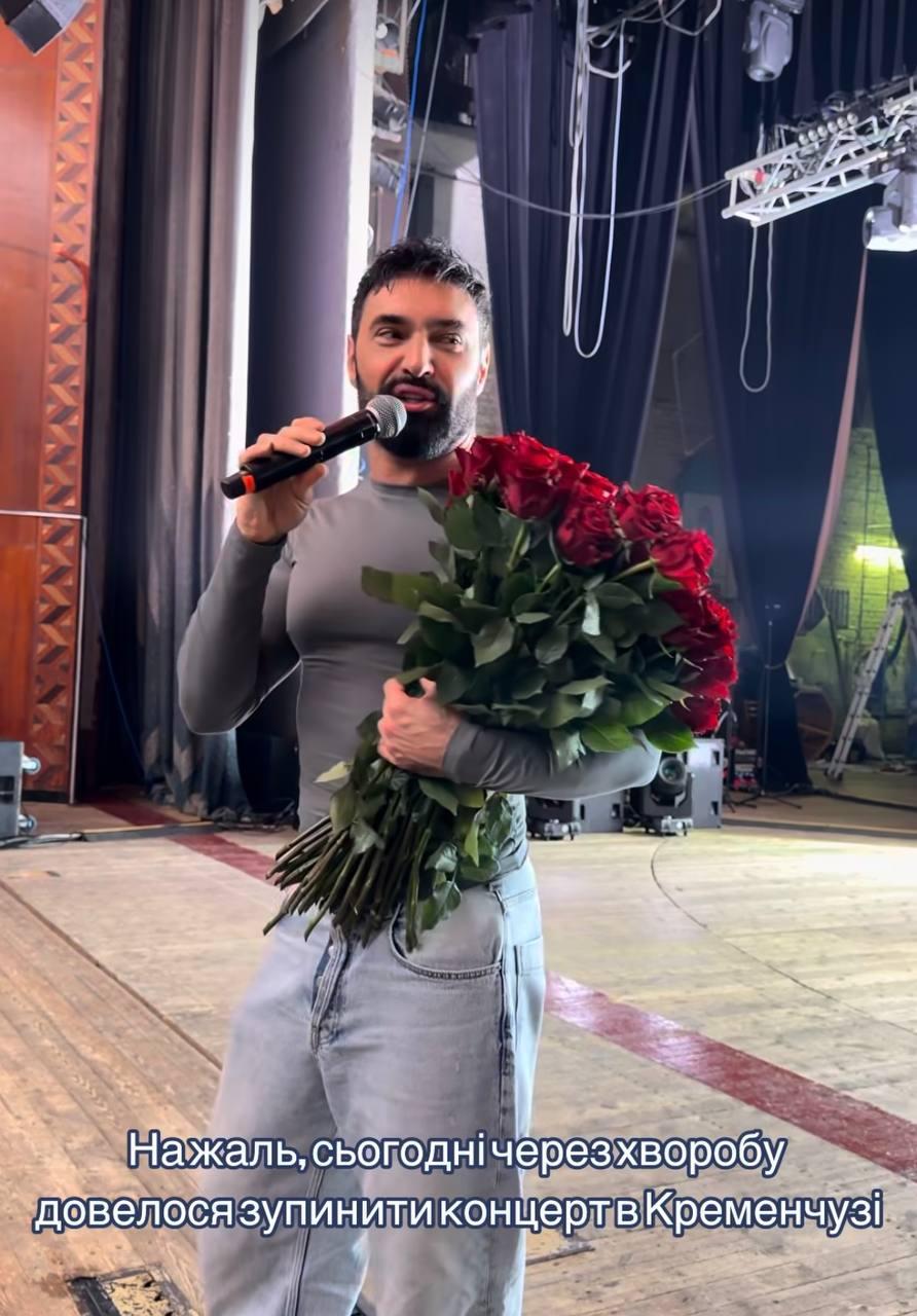 “Люди мої рідні! Я так чекав нашої зустрічі. І знаю, як чекали ви. Але, на жаль, щойно довелось зупинити концерт, бо хвороба взяла своє, голос зірвався і співати я вже не міг. Повне незмикання зв’язок. Пауза в декілька днів дуже потрібна, щоб одужати. Тому концерт в Черкасах завтра теж вимушений перенести. Я прошу у вас вибачення”, – наголосив артист в своєму Instagram.